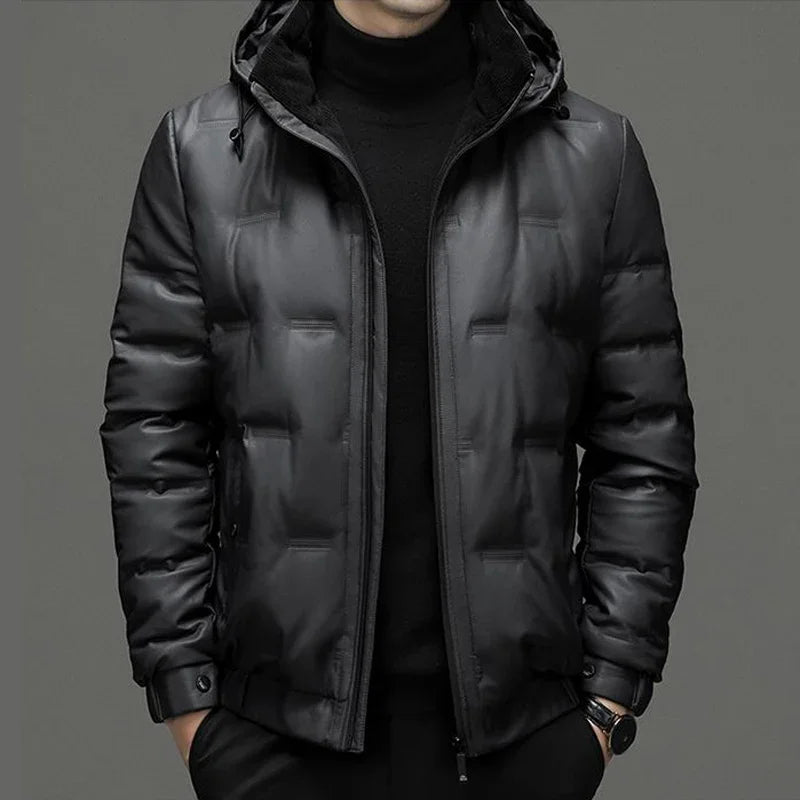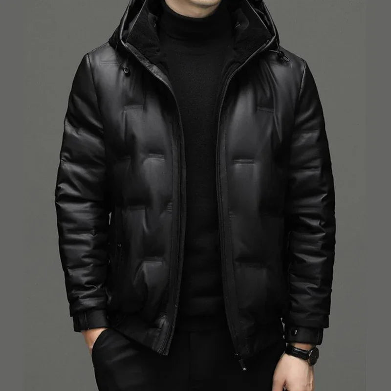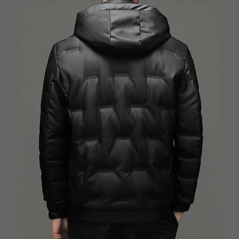 Men's Genuine Leather Luxury Down Jacket Man Winter Hooded Short Thicken Large Size Sheepskin Coat Male Oversized Puffer Jacket