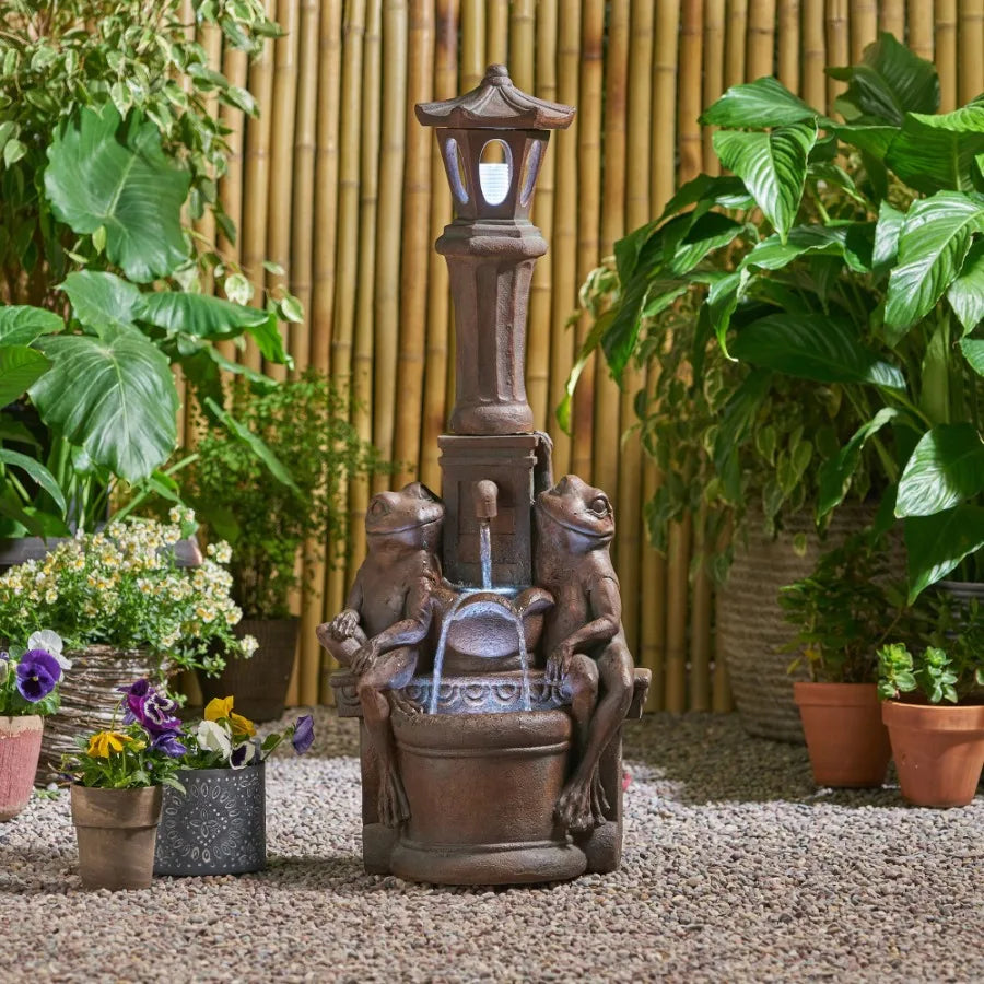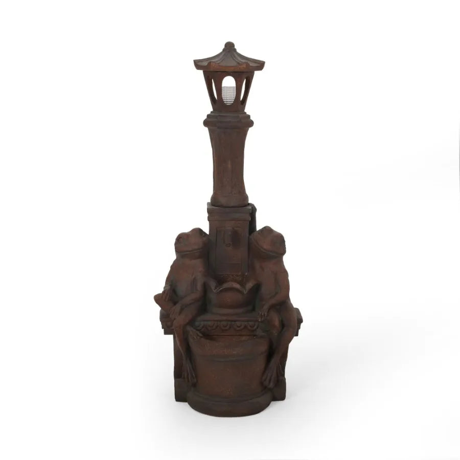 37.25 High Elaine Sapos Fountain Rustic MultiBrown Hand Crafted Resistant Floor Fountain with Light